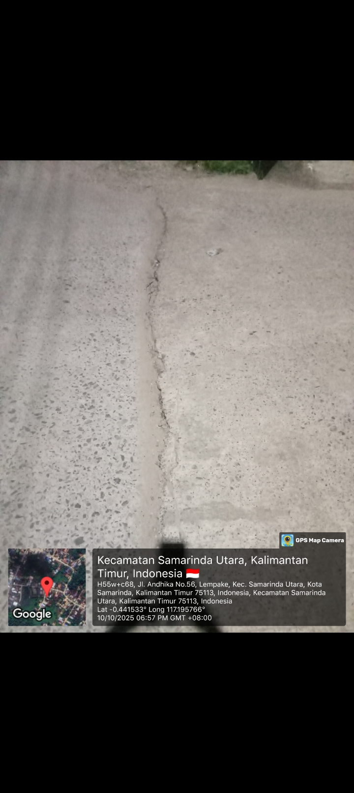 , Lempake, Samarinda Utara Ringan Slab pecah/retak di sambunganJalan Andika