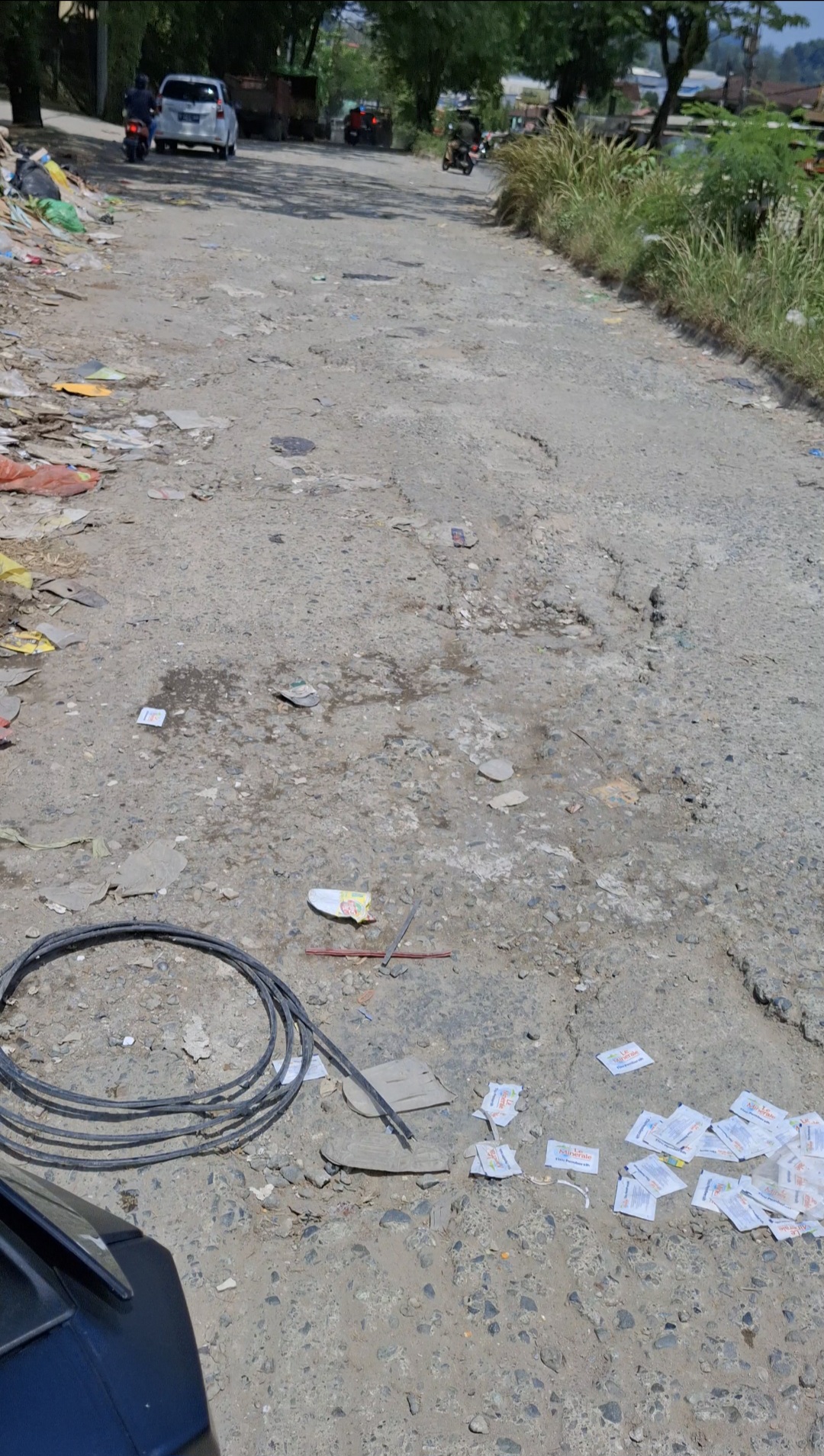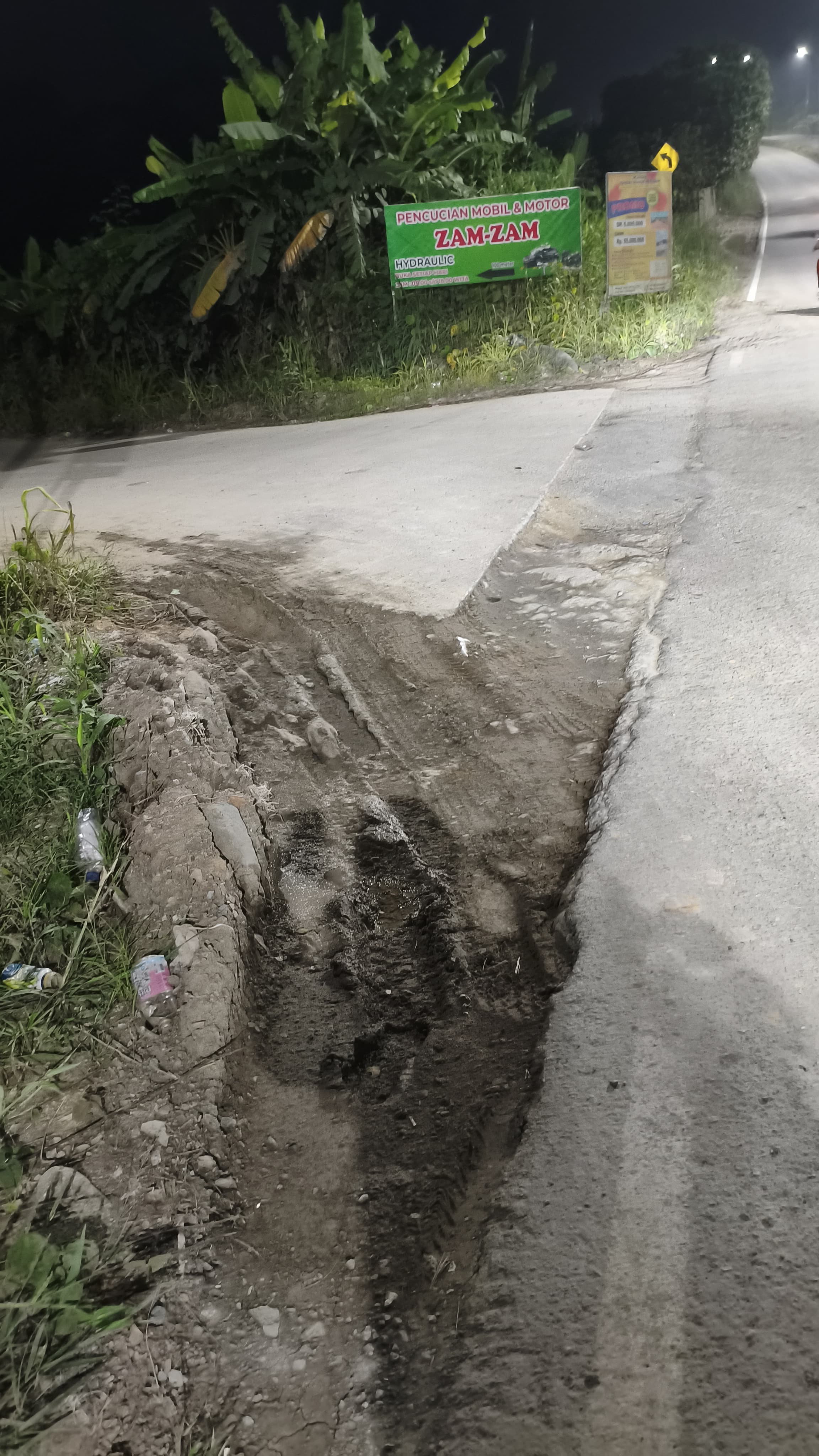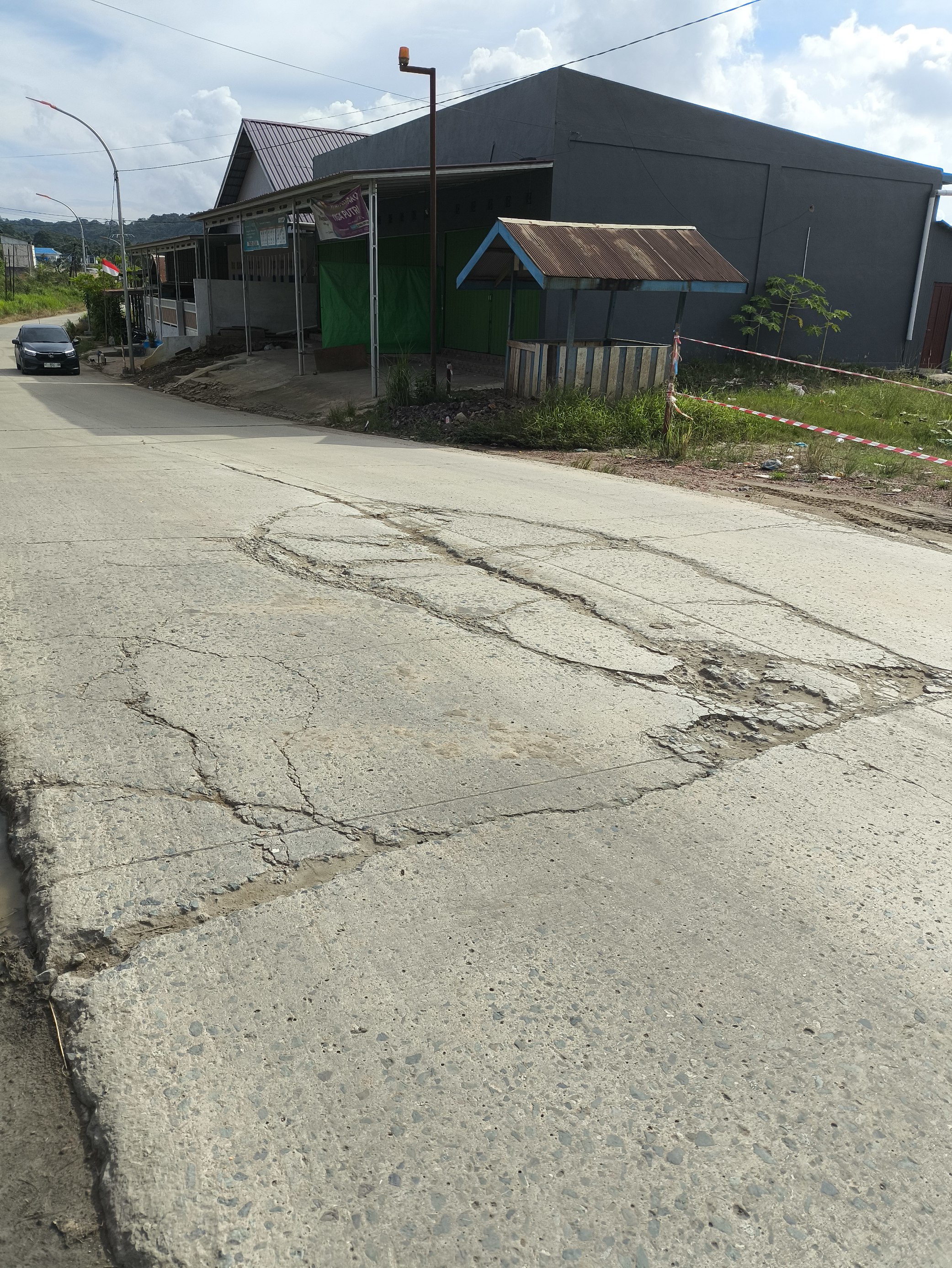 Terdapat jalan rusak dekat perumahan bumi Andalusia residence 1, diakibatkan karena dulunya cross street hauling tambang hingga saat ini belum ada perbaikan.