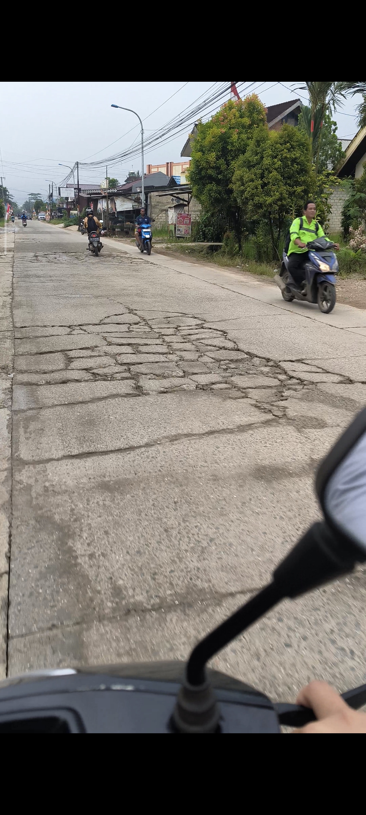 Jalan berlubang, sudah sering diperbaiki oleh warga sekitar tapi kini kembali rusak.