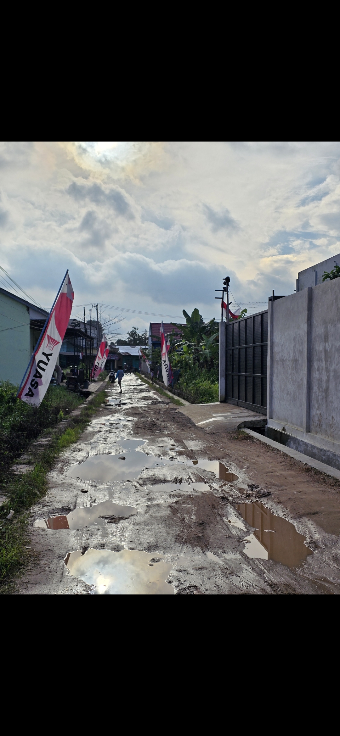 Jalan rusak parah tidak layak untuk dilewati disaat cuaca hujan, banyak kubangan air dan jalan licin tanah merah urukan